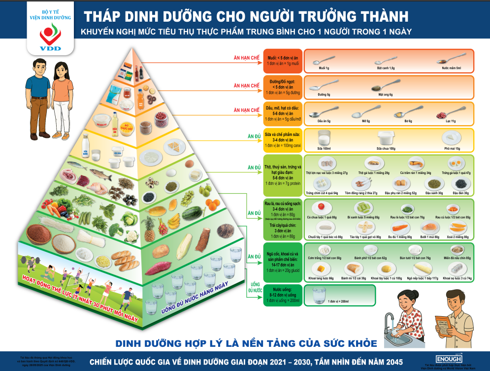 Dinh dưỡng hợp lý là nền tảng quan trọng bảo vệ sức khỏe và nâng cao tầm vóc người Việt. Để sử dụng tháp hiệu quả, người dân nên: